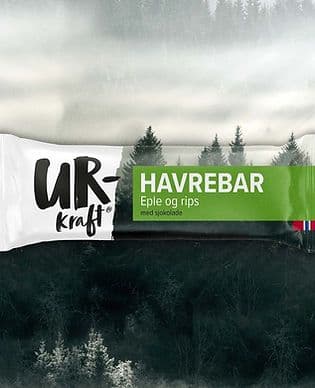 Urkraft havrebar med eple og rips er en smakfull bar proppfull av fiber, næring og langvarig energi fra norsk havre, gresskar og solsikkekjerner. Deilig fudgy konsistens med smak inspirert av norsk natur. God og frisk smak uten å være for søt. Laget i Skien av stolte barsentusiaster.